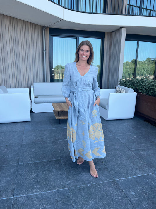 Jurk | Greek Archaic Kori Light Grey/Gold