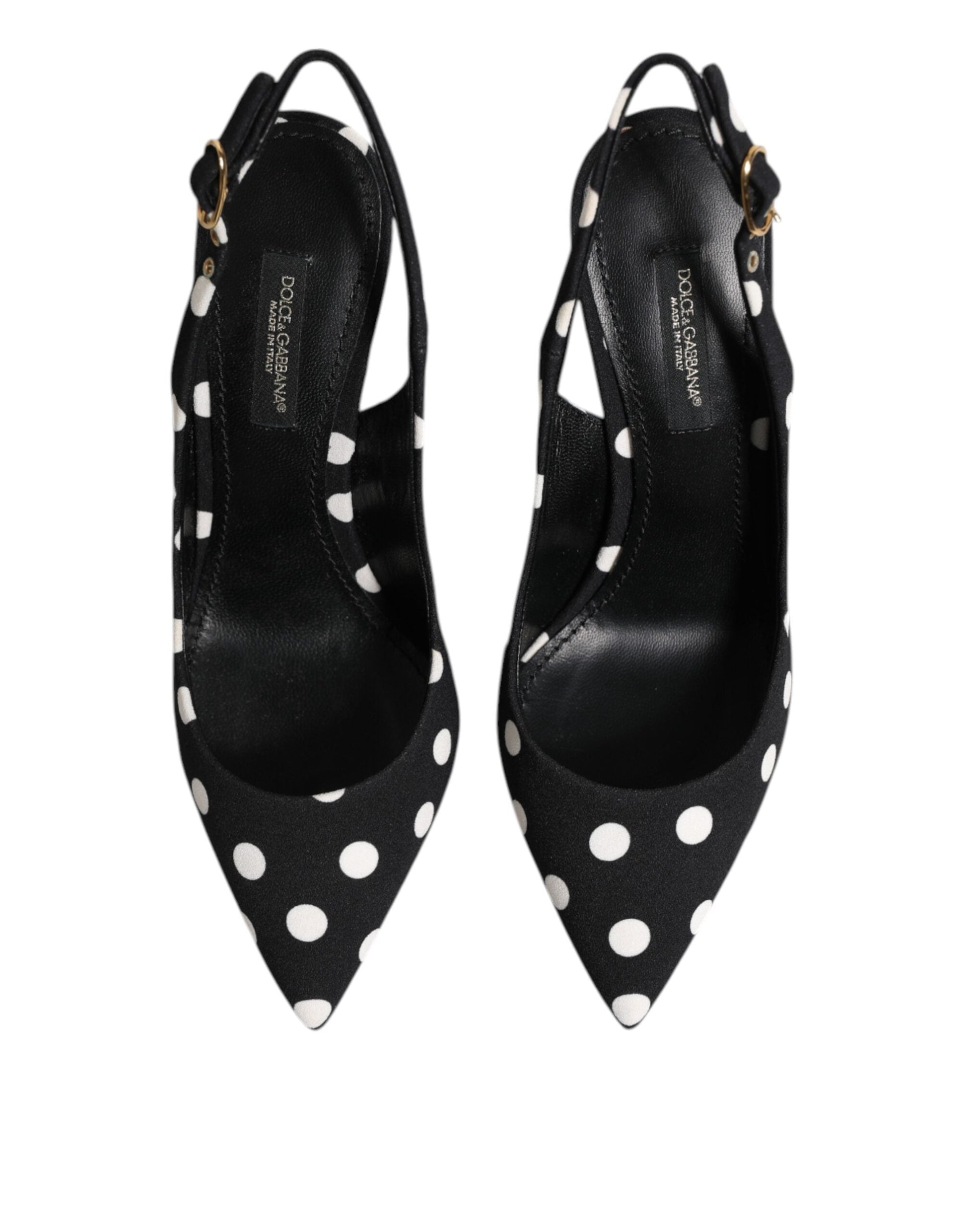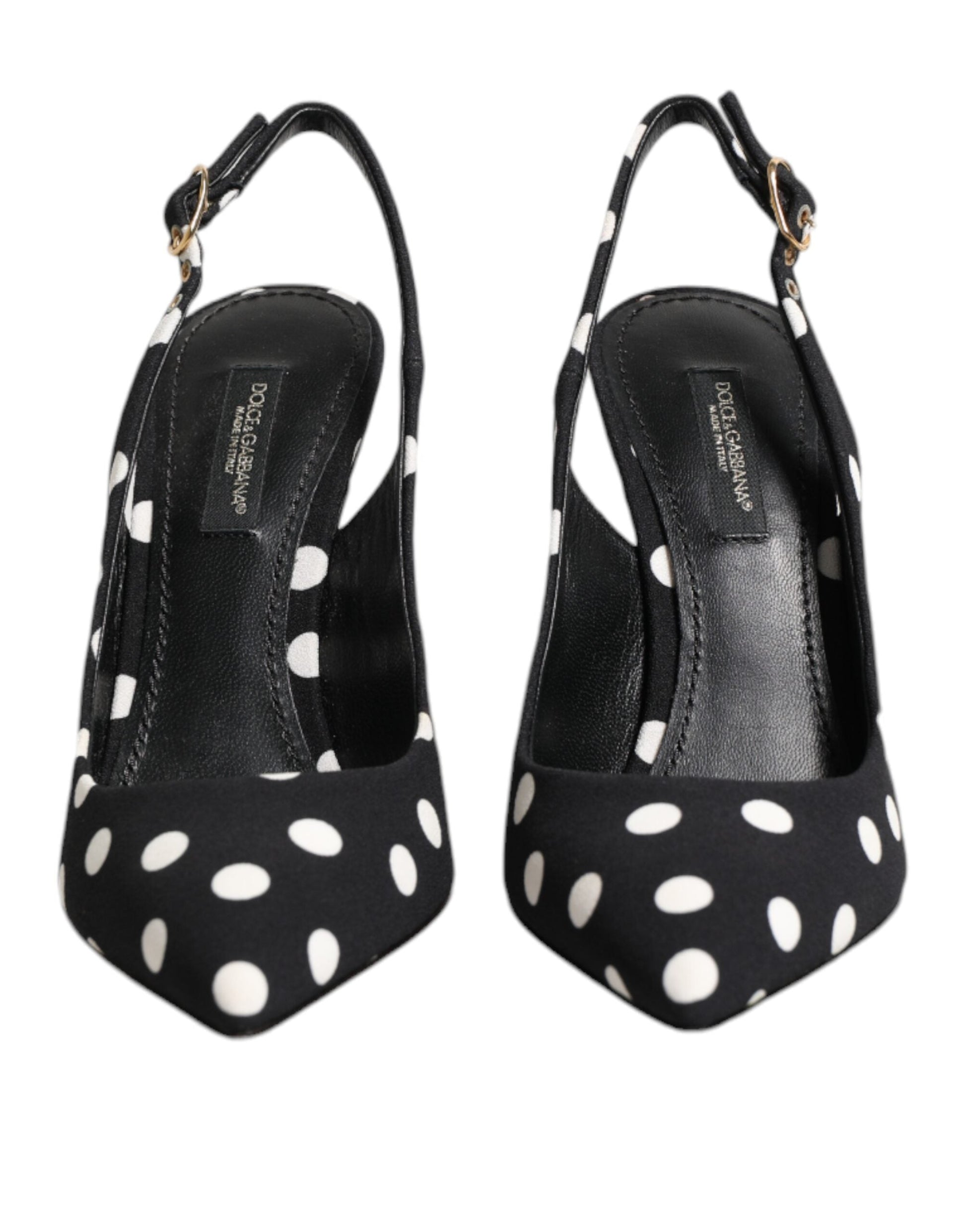 Dolce & Gabbana Black White Dotted Stiletto Slingback Shoes
