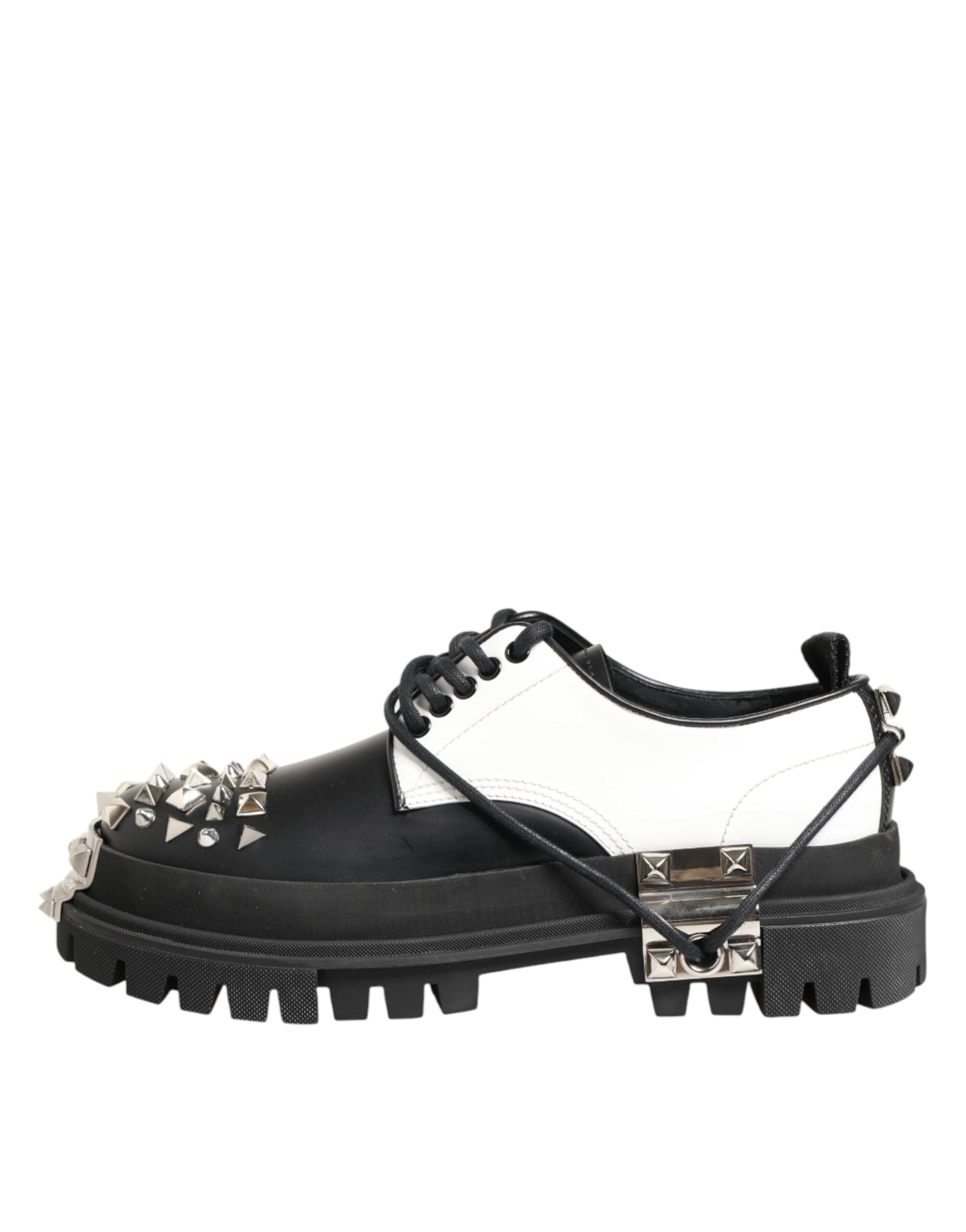 Dolce & Gabbana Black White Studded Men Formal Derby Shoes